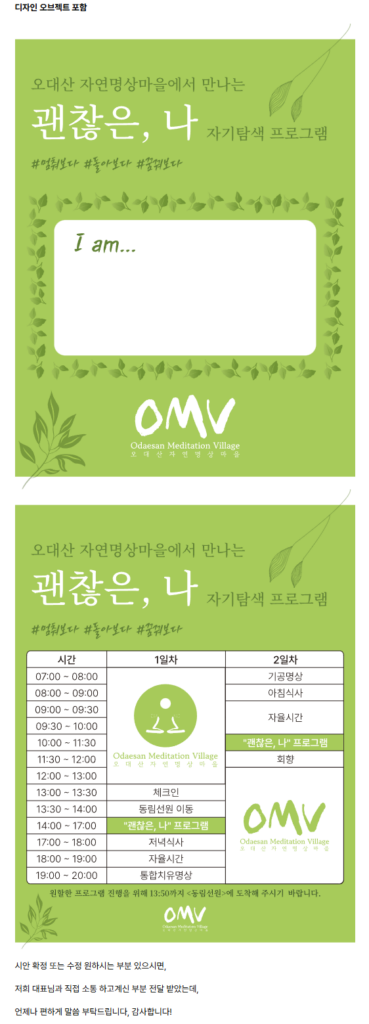 이번 제작사례는 **오대산 자연명상휴양림 ‘옴뷔’**와 함께 진행한