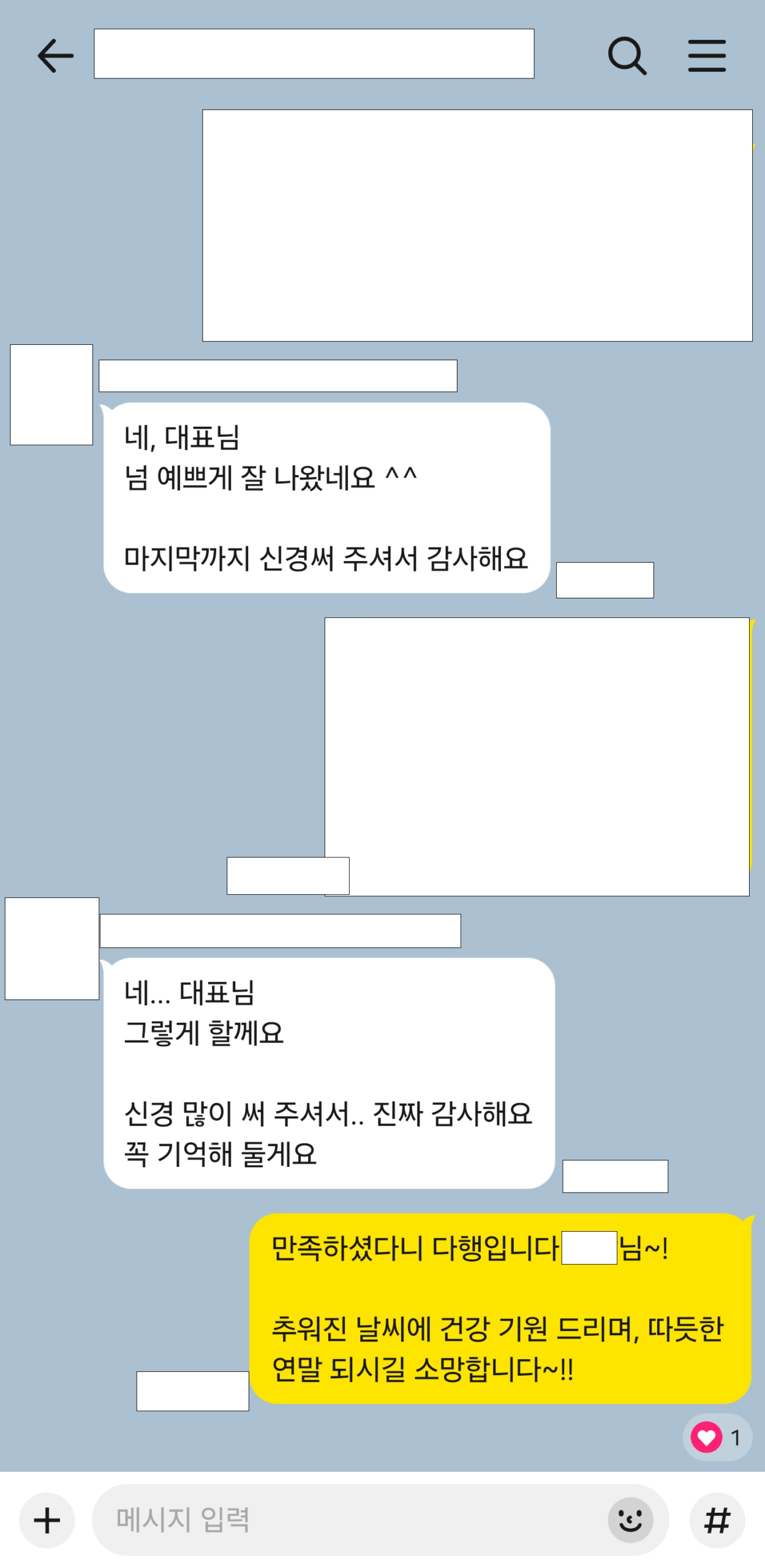 • 저희는 고객님께 이런 메세지 받으려고 일을 합니다.