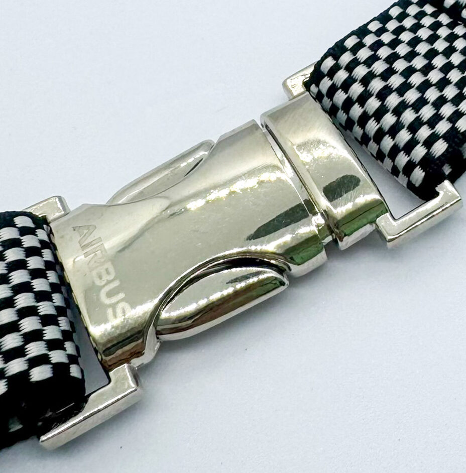 배지는 스트랩 위 고정 위치에 장착되어 브랜드 로고가 자연스럽게 눈에 띄며,